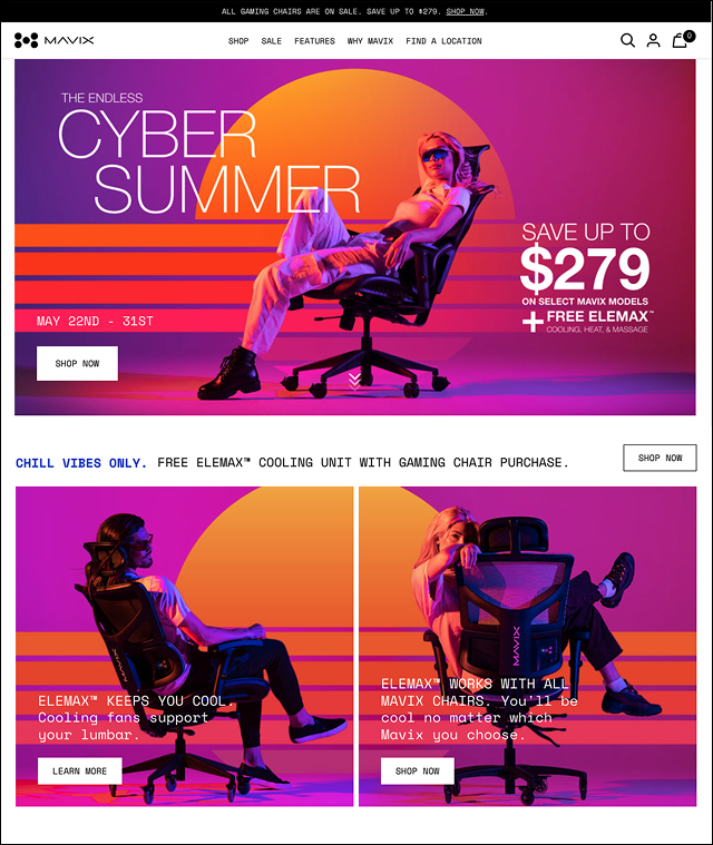Examples of the Mavix homepage during the Cyber Summer Sale